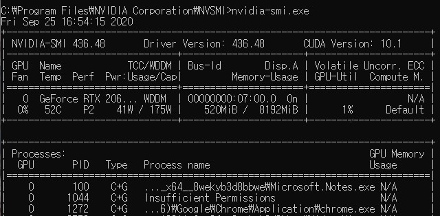 Windows 10 기준 nvidia GPU 사용량을 볼 수 있는 cmd 명령어