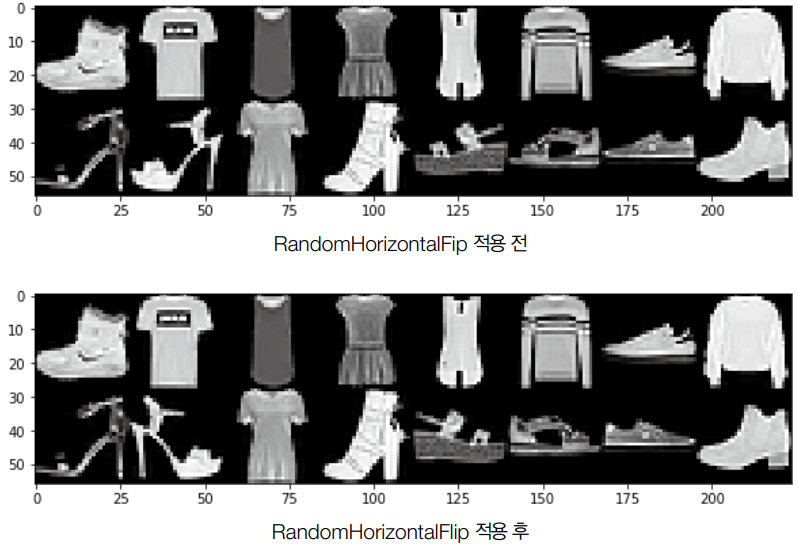 이때의 관건은 transforms.Compose함수를 호출하고, 같이 사용한 RandomHorizontalFlip함수이며, 이 함수는 이미지를 무작위로 수평 뒤집기 하여 학습 예제를 2배 늘릴 수 있다.