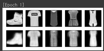 아래 이미지가 실제 학습 과정에서 출력되는 이미지 이며, Epoch 1과 Epoch 50의 차이를 확인해보자.