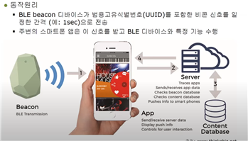 : 특정 신호(비콘)을 일정하게 보내는 장치/ bluetooth 4.0또는 bluetooth smart로도 불림