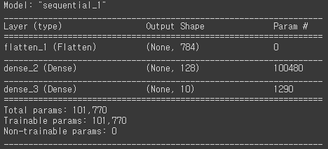 model.add(tf.keras.layers.Flatten())# Flatten() : 2차원 배열(이미지) --> 1차원 배열로 전환 = 28*28 --> 784