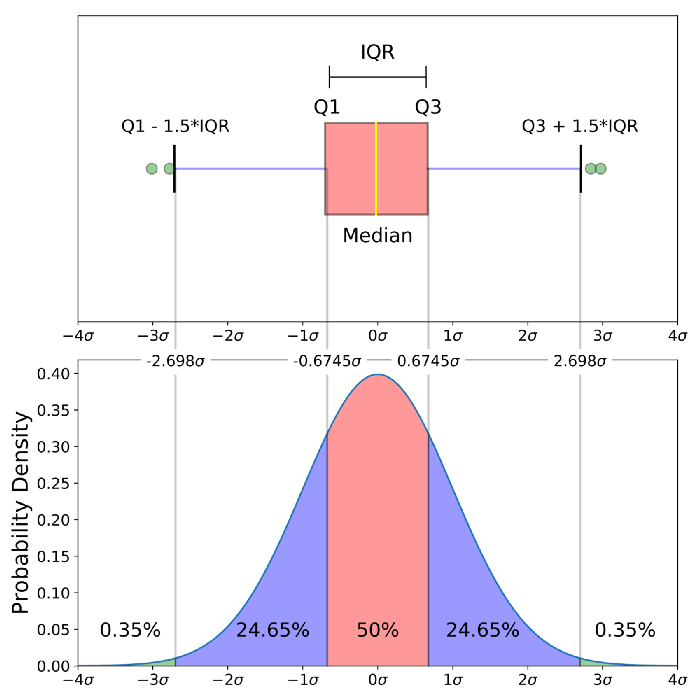 - IQR : Interquartile Range $Q_{1}$과 $Q_{3}$의 차이