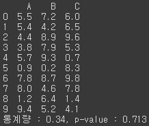 one_way_anova = stats.f_oneway(df.A, df.B, df.C)# 일원분산분석