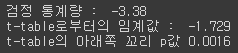 print('t-table로부터의 임계값 : ', np.round(t_alpha, 3))