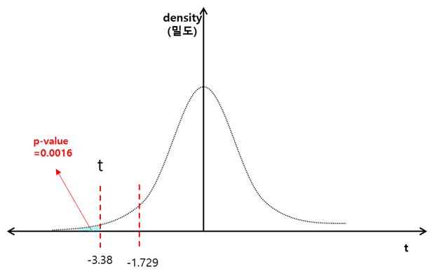 - p-value : 귀무가설이 옳다는 전제 하에 표본에서 실제로 관측된 통계값과 같거나 더 극단적인 통계값이 관측될 확률