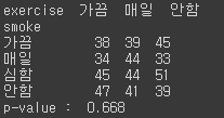 print('통계량 : {}, p-value : {}'.format(np.round(one_way_anova[0], 2), np.round(one_way_anova[1],3)))
