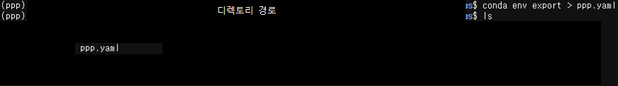 현재 사용하고 있는 가상환경을 activate한 상태 기준으로, 아래 명령어로 yaml파일을 만들어준다.