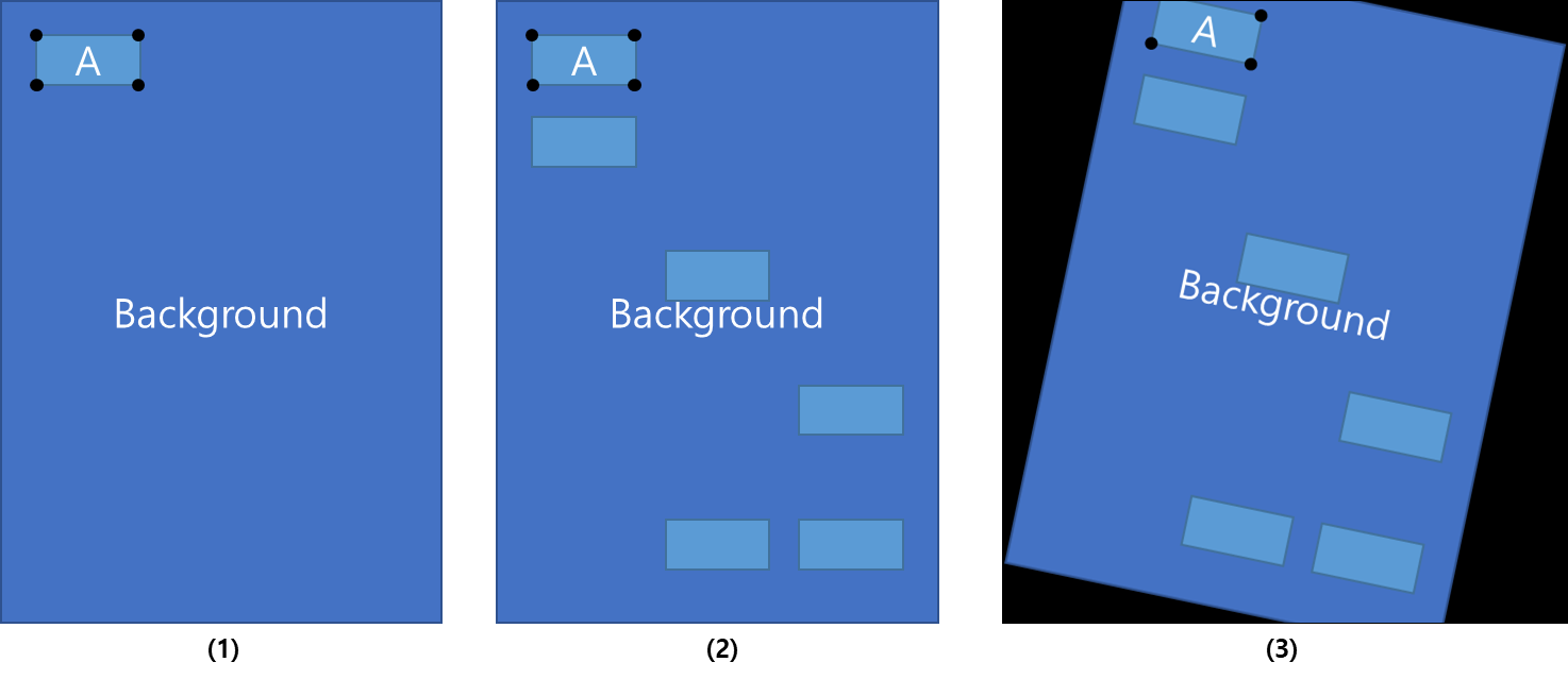 (1) 이미지 처럼 Background image가 존재하고, A와 같은 small box들을 여러 개 합성했을 때,
