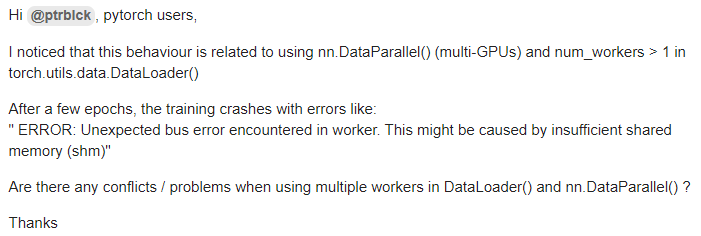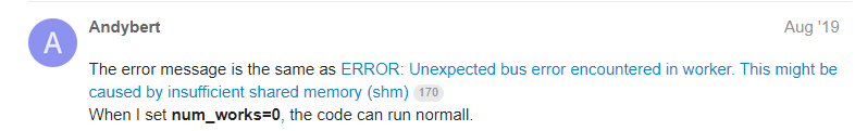 ERROR: Unexpected bus error encountered in worker. This might be caused by insufficient shared memory (shm).
