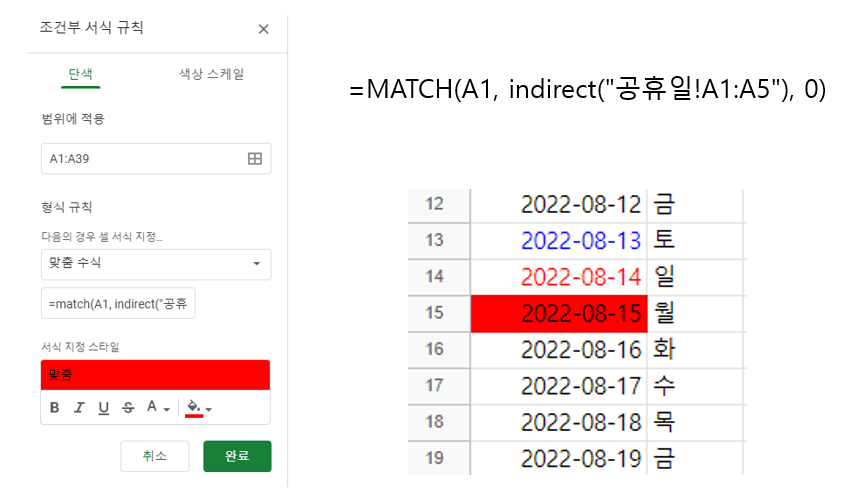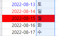 공휴일 시트 안에 있던 날짜를 보고 공휴일도 빨갛게 칠해줄 수 있었다.