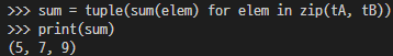 만약 길이가 동일한 tuple끼리 더하여, 요소 합을 만들고 싶으면 아래 처럼 진행하면 된다.