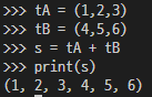 기본적으로 tuple 내 합은 concat을 의미한다.