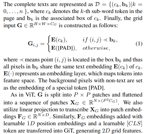 - Document image를 2D token level grid로 임베딩하고, 이를 GiT 모델에 grid로 전달