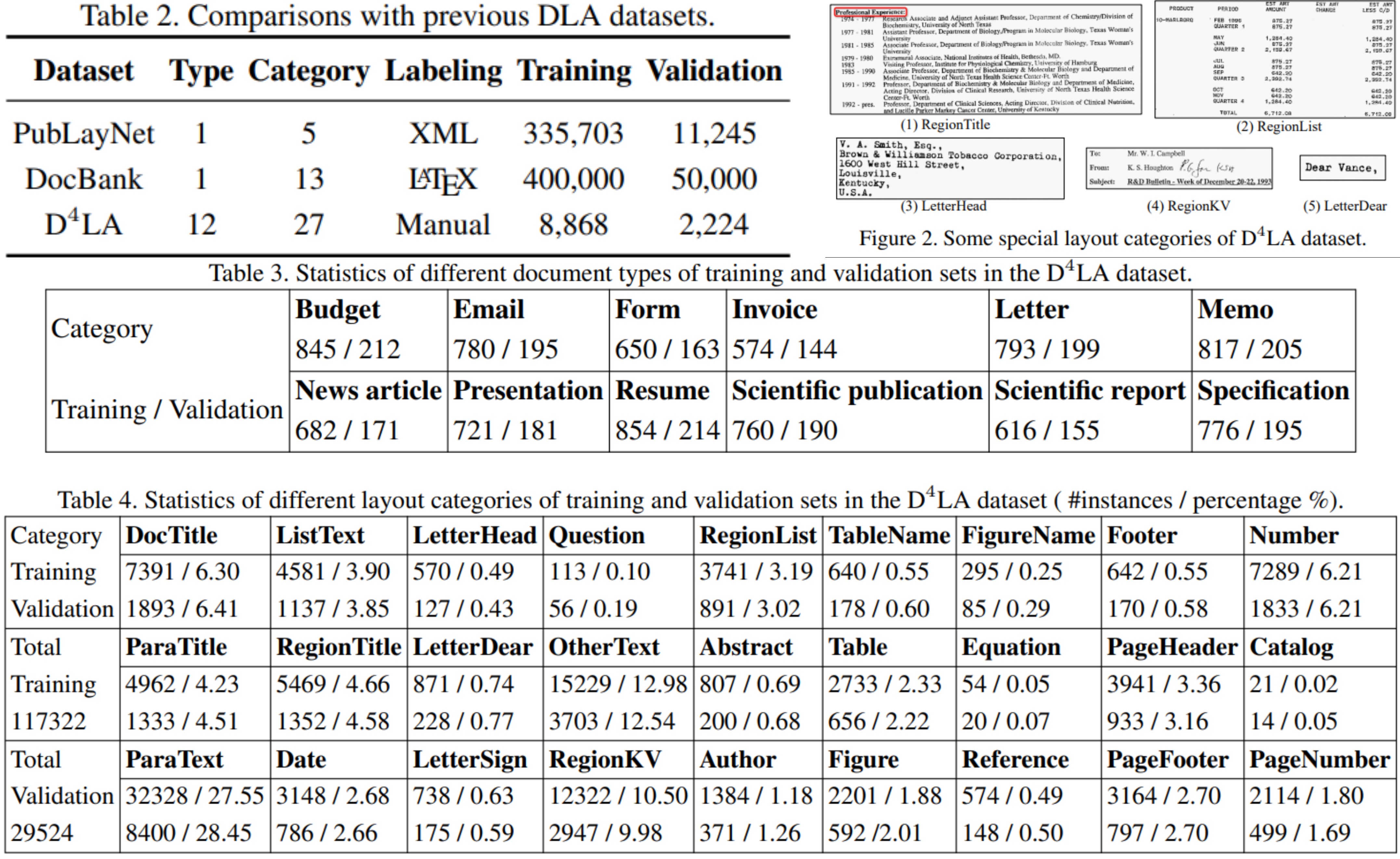 - $D^4LA$ : 문서 layout analysis를 위해서 만든 benchmark dataset 발표.