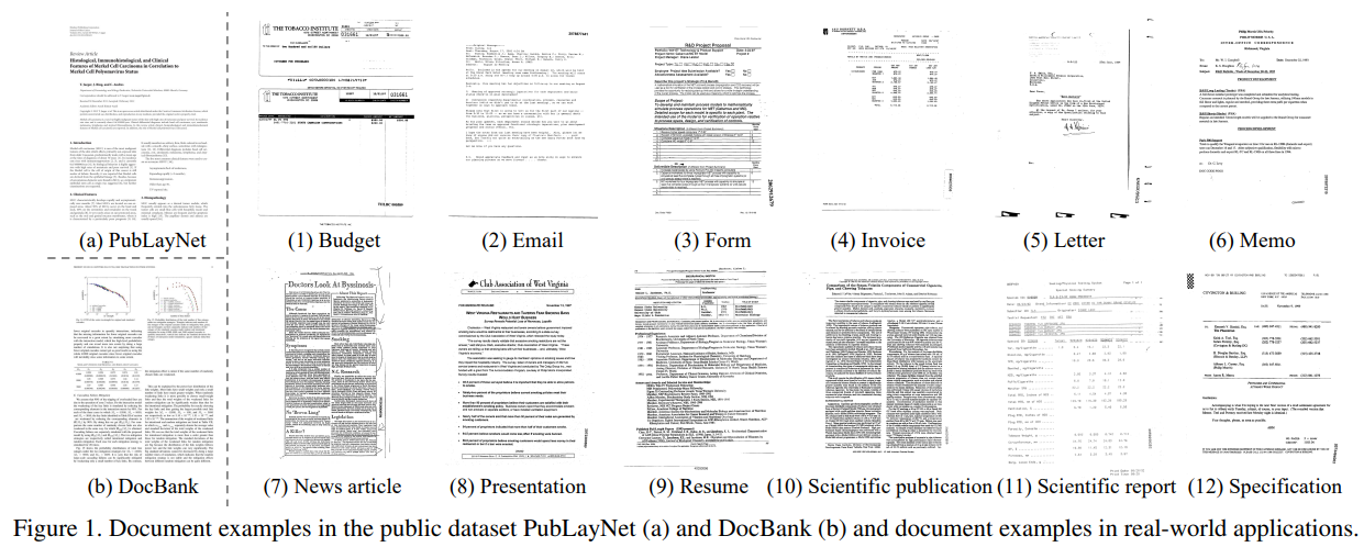 - 상단 PubLayNet, DocBank처럼 12개의 문서 타입을 포함.