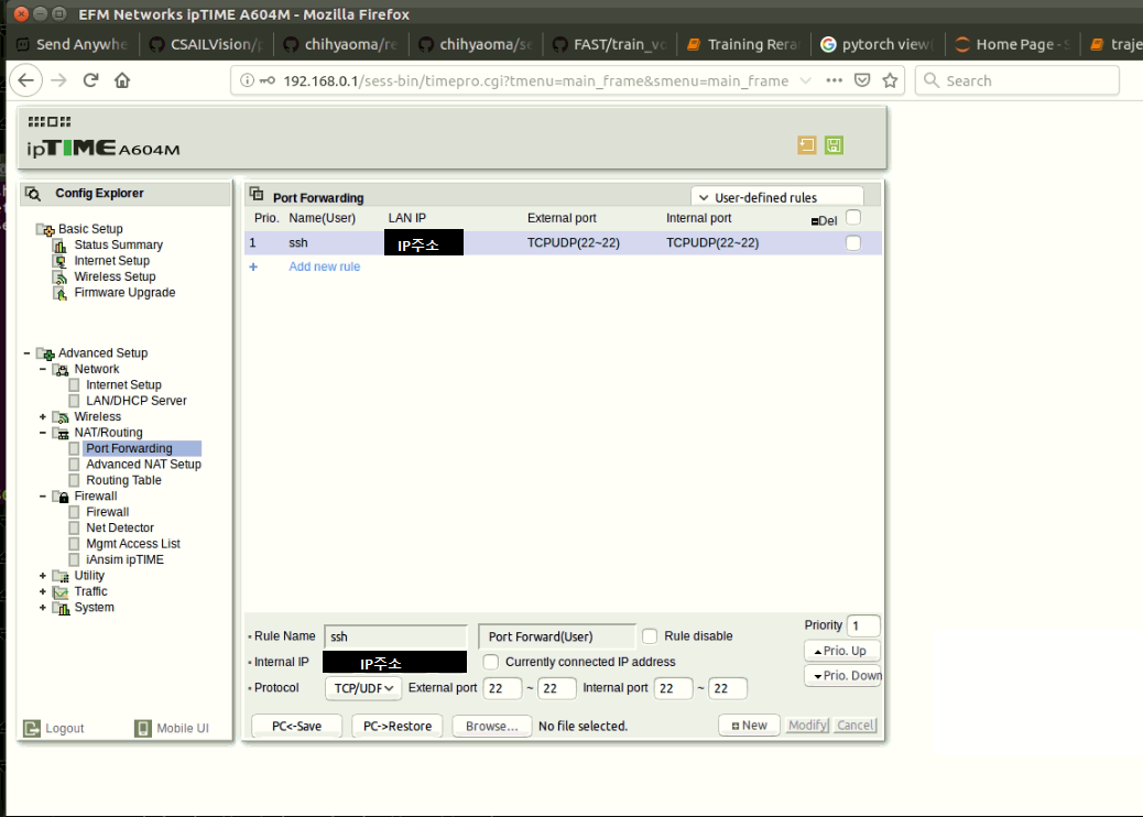 [IPTIME]의 경우엔 192.168.0.1로 들어가 연결해준 후,