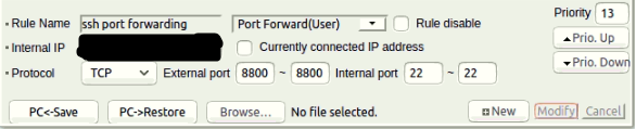 다음과 같이 Port Forwarding에 Rule을 추가해주면 연결 가능.